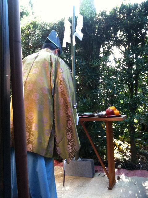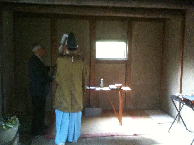 近所の神社から神官さんを呼んで執り行いました。七五三で忙しい時期にわざわざ来ていただきありがとうございますー!
