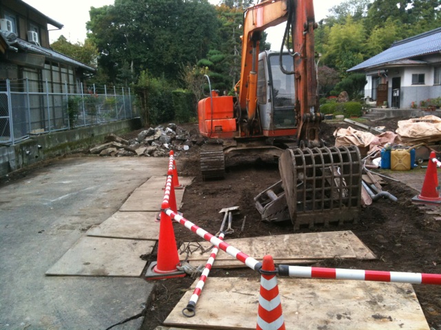 おじいちゃんちのアプローチや、お父さんちの庭も削らせてもらうので、またあとでお庭を工事するときに