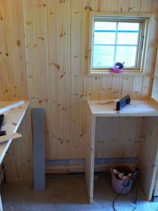 窓の下にも収納~。かわういですね~。板壁~