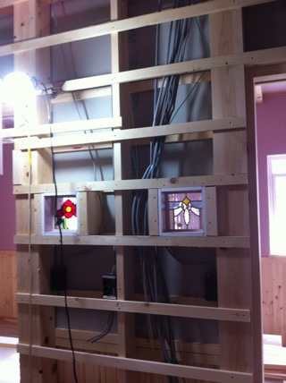 二階の子ども部屋の入り口には、ステンドグラスもはいってます^^