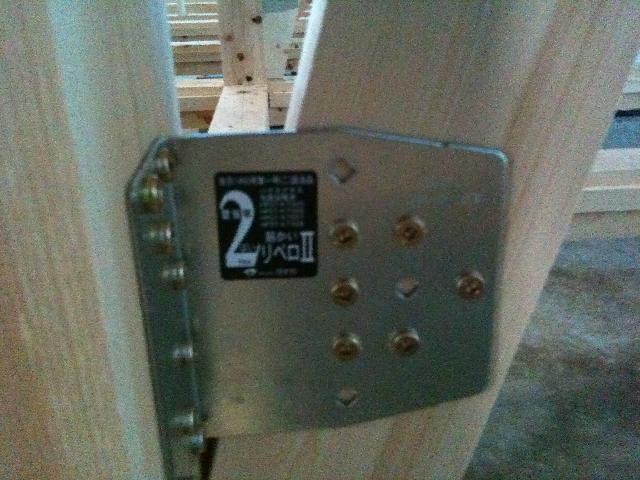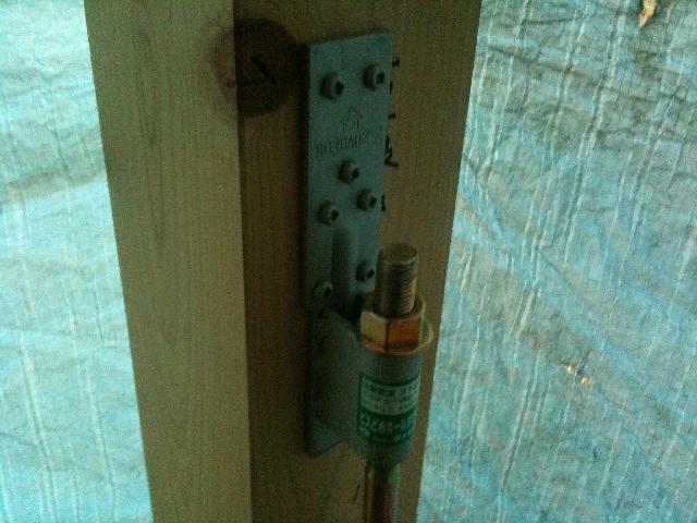 これは基礎から伸びているホールダウン金具を柱に固定しています。