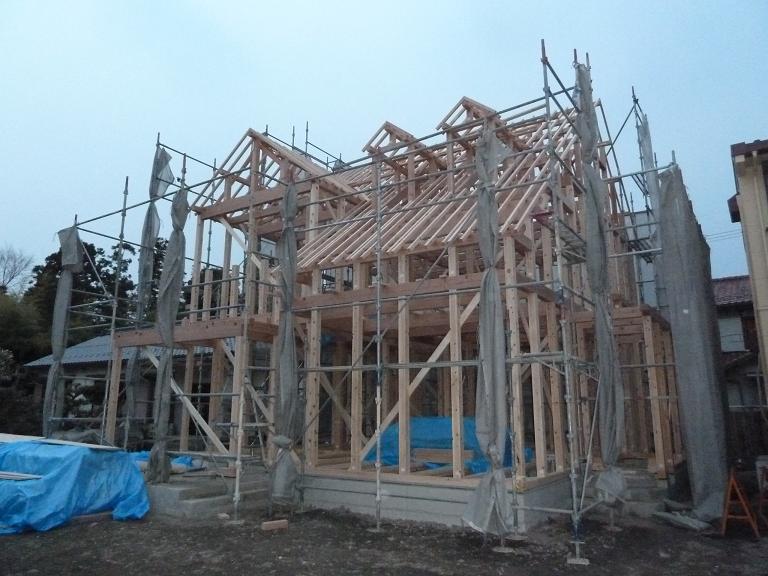 上棟終了です。なんとなく家の形が分かりますね。