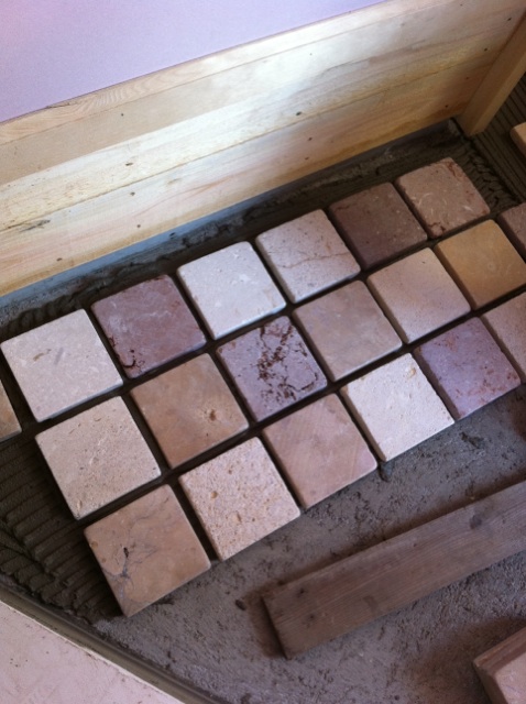 玄関かまちの天然石タイルの初おめみえ。