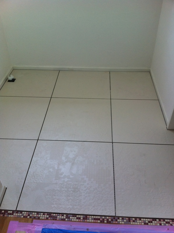タイルにどんどん目地がはいってます。
