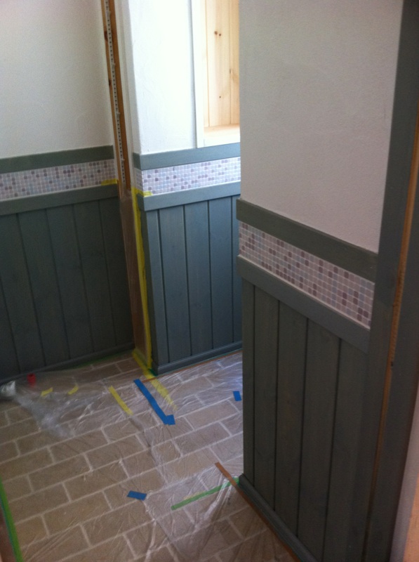 トイレ腰壁。塗られましたよ。