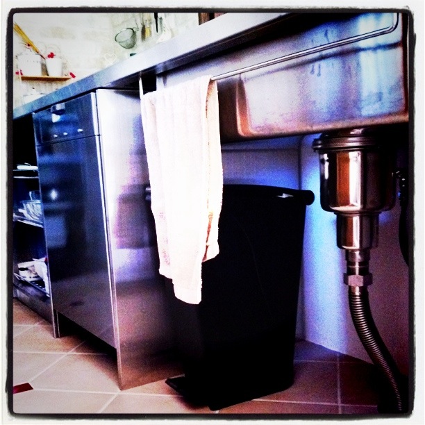 お友達にステンレスキッチンを自慢するために加工した写真。