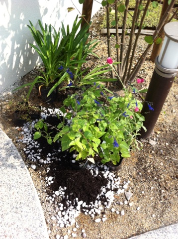 あと、シュウメイギク、ブルーベリー(ウッダート、ホームベル)、カシス、シロタエギク、センニチコウ(一年草)、夏スミレを自分で買ってきたのをいれてもらいましたー。
