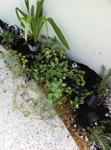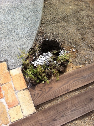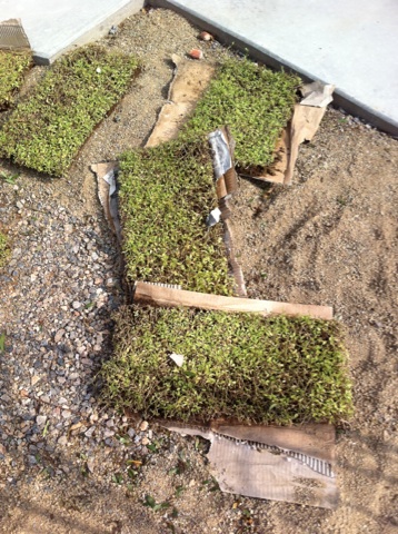 駐車場のグランドカバーになる予定の、ヒメイワダレソウ。