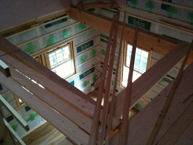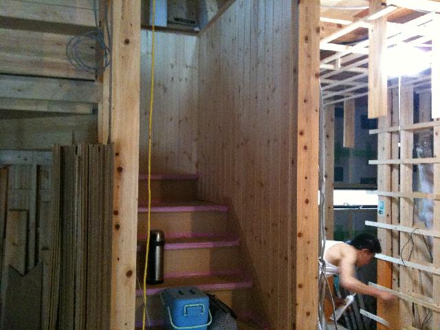少しずつ家の構造部分が終わりに差し掛かり、内部工事が始まっています。