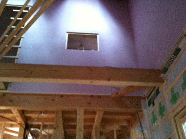 この穴には室内窓が入る予定、、向こう側は子供部屋になるのかな?